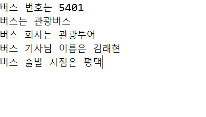 System.out.println("버스 기사님 이름은 " + bus.driver_name);
