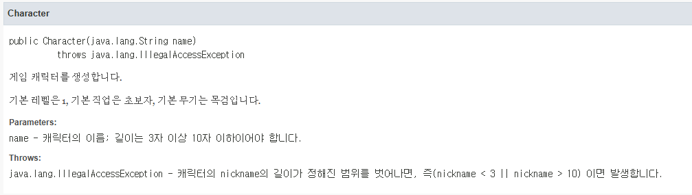 throw new IllegalAccessException("캐릭터의 이름은 3자 이상 10자 이하입니다.");