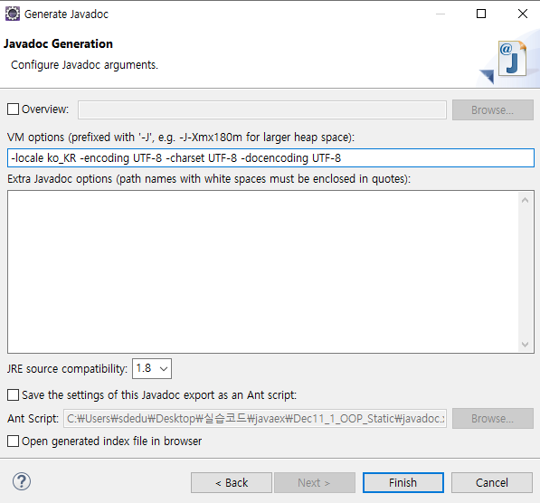-locale ko_KR -encoding UTF-8 -charset UTF-8 -docencoding UTF-8