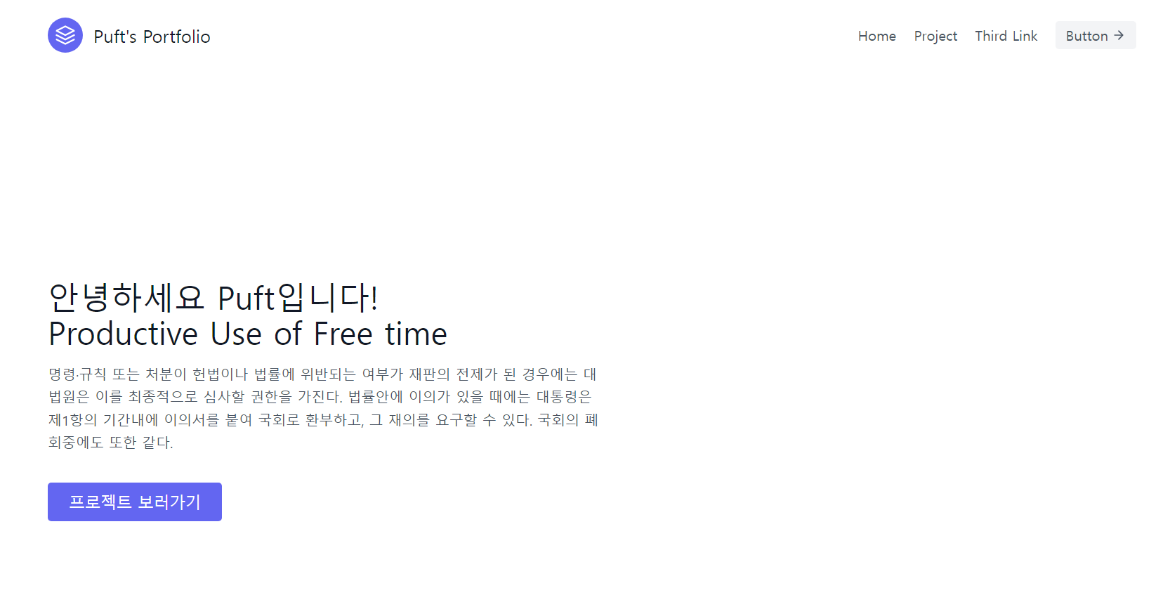 < h1 className = "title-font sm:text-4xl text-3xl mb-4 font-medium text-gray-900" > 안녕하세요 Puft입니다!