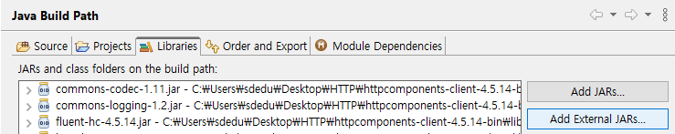 Add External JARs를 누른 후