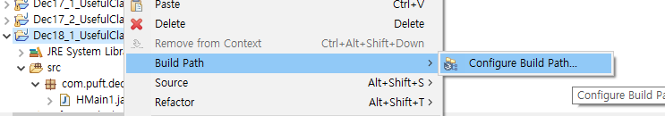 프로젝트 우클릭한 뒤 Build Path를 누른 후