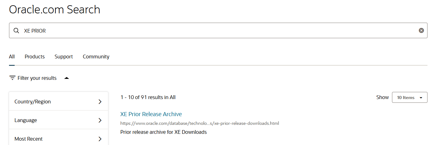 오라클에서 XE PRIOR를 검색하고