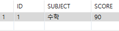 SELECT 1 ID, '수학' SUBJECT, 90 SCORE FROM DUAL;