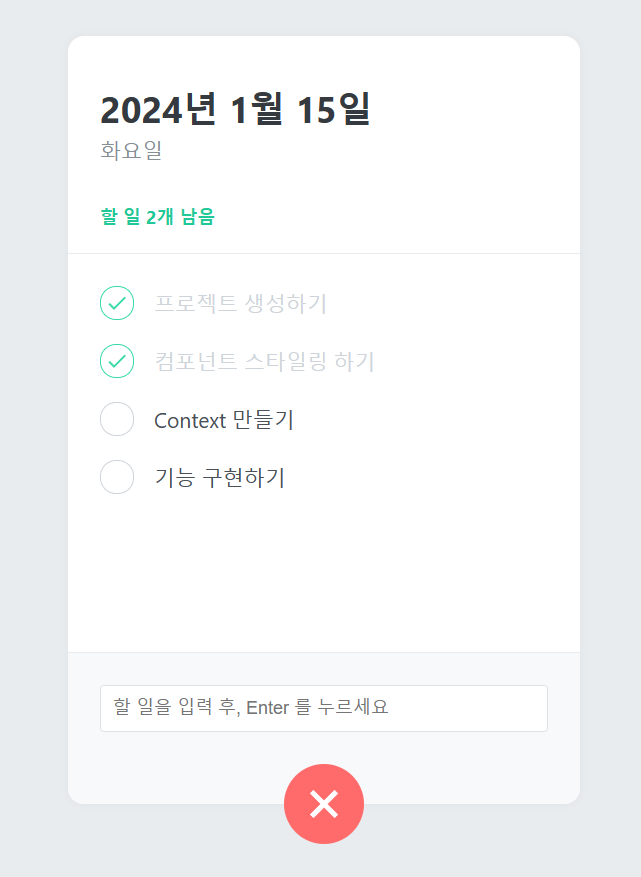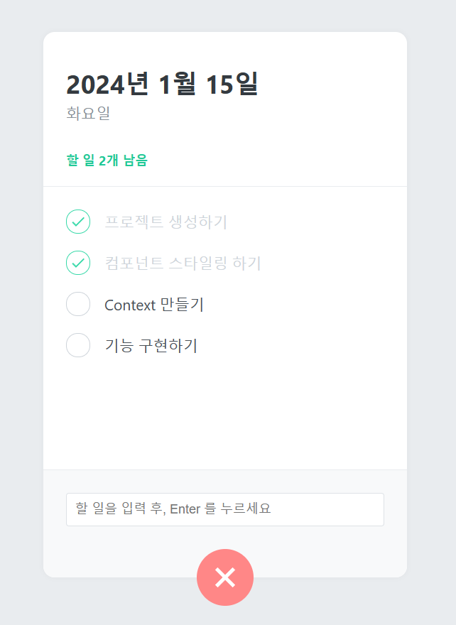 | [React] 투두리스트 웹 만들기 2 (1) | 2024.01.17 |