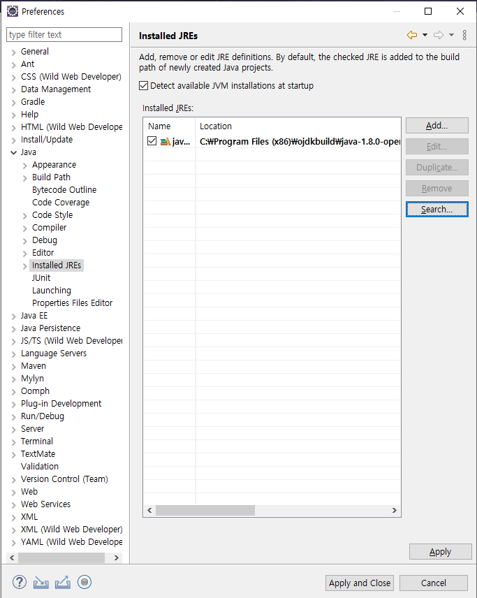 C의 Programfiles에 있는 ojdk파일을 추가해줍니다.