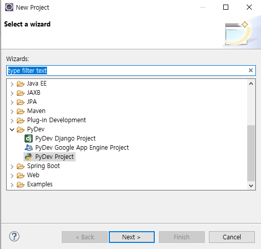 PyDev Project를 만들어줍니다.