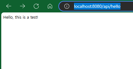 /api/hello로 이동 시 테스트 문자열이 출력되도록 하였습니다.