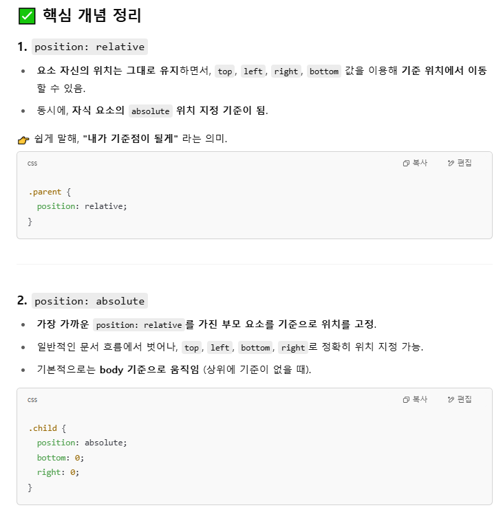 top, left, right, bottom 등을 사용해 절대 위치를 부여할 수 있다.
