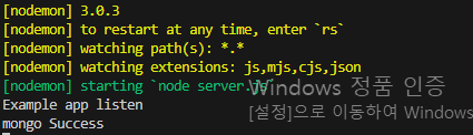 실행하게 되면 성공적으로 MongoDB와 연결됩니다.