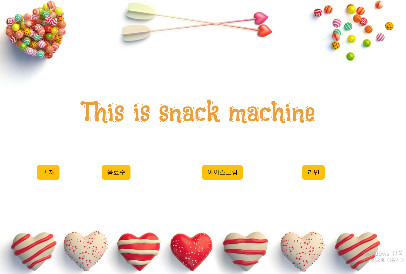 대문글은 위쪽에서 300px 멀어지게 하였고, 아래쪽 버튼들과는 100px 멀어지게 하였습니다.