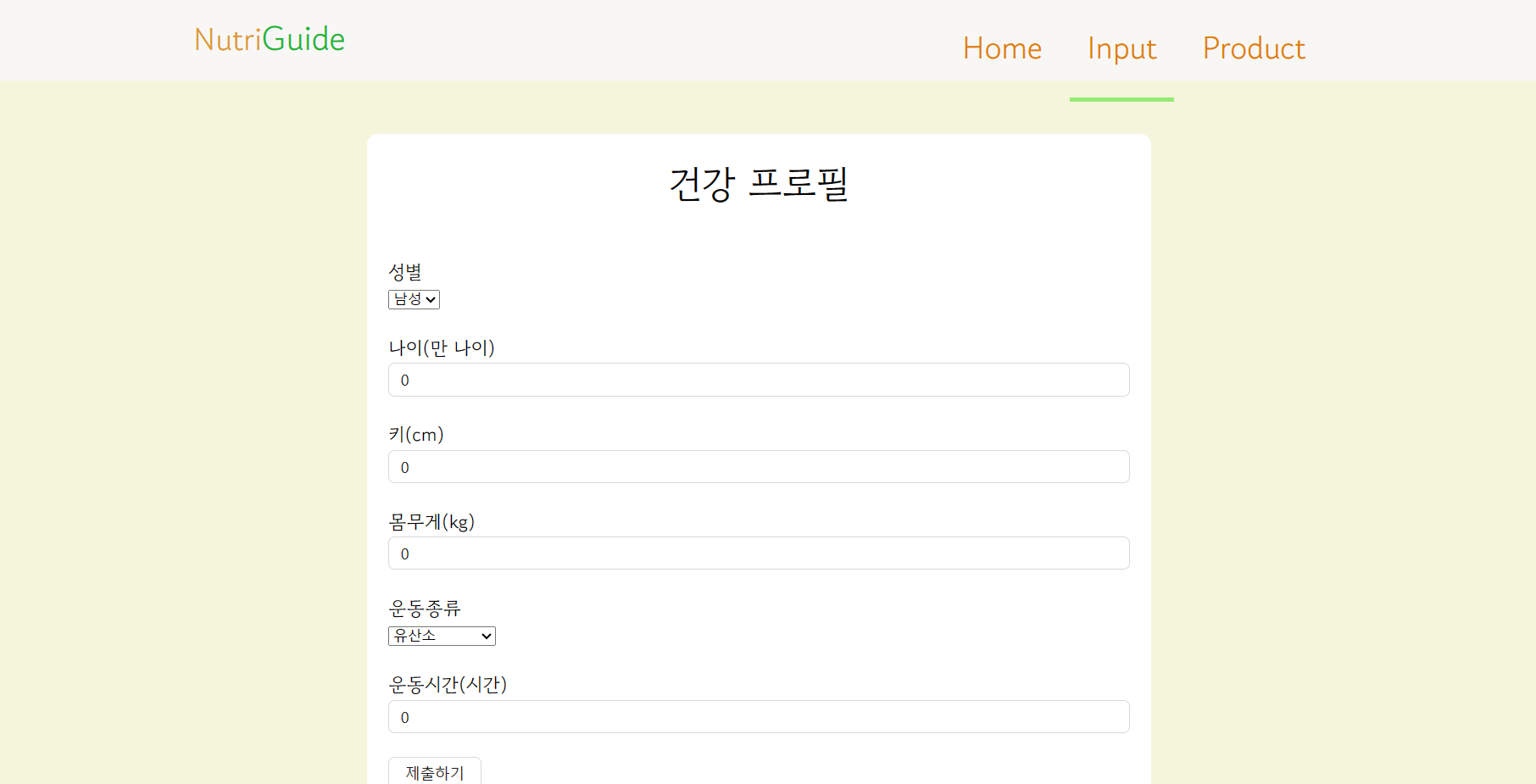 InputPage에서는 사용자의 건강 정보를 입력받고 데이터를 저장합니다.