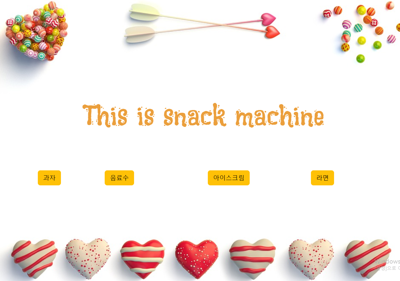 뜻입니다. 그런데 글씨가 너무 치우쳐져 있죠? 여기서는 snack machine 대문 로고에 사용했던 css를 사용하면 좋겠네요!