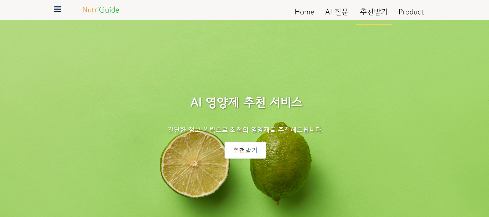 Navbar에서 추천 받기 버튼을 누르면 위 페이지로 이동하고 추천받기를 누르면