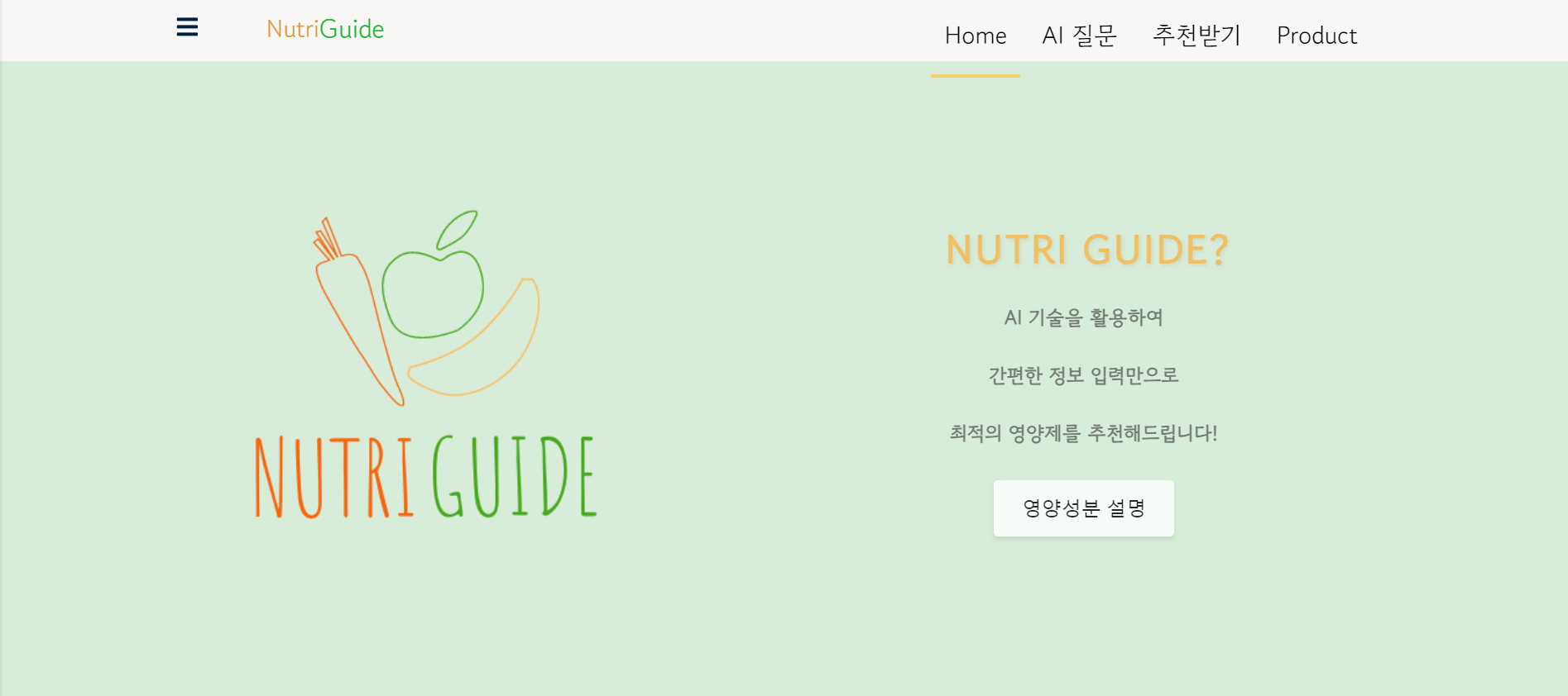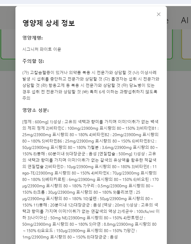 영양성분 설명 버튼을 누르면 성분 설명 페이지로 이동합니다.