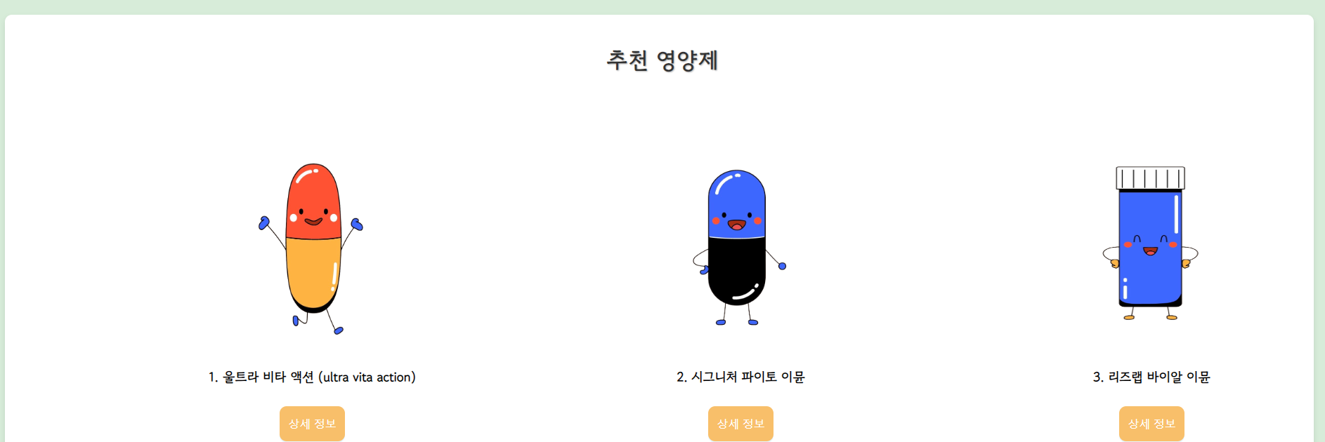 페이지 하단에는 추천 영양제 3개를 보여줍니다.