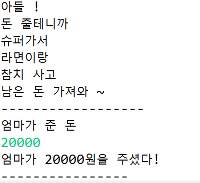 System.out.println("엄마가 준 돈:");