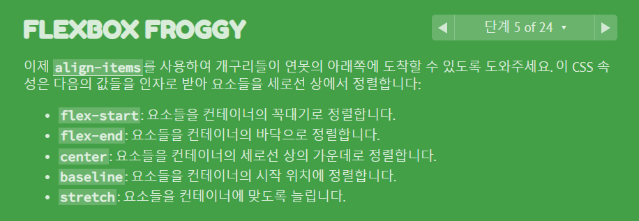 전 포스팅에 이어서 Flexbox Froggy 게임을 진행해보도록 하겠습니다.