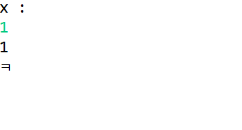 System.out.println("x :");